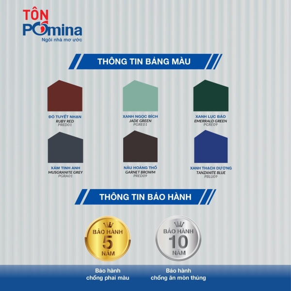 - Lớp sơn lót và sơn phủ ngoài sử dụng hệ sơn PomiColor® được sáng chế giữa Tôn Pomina và AkzoNobel